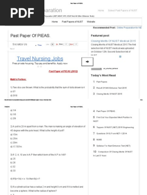 Nust past exam papers preferences. The best online source for entry test preparation. Nust university is like a dream for the students as in the very short time of spam this university has touched the height of fame and priority.