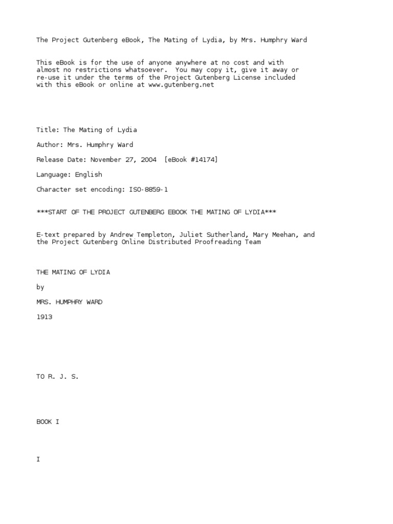 The Mating Of Lydia By Ward Humphry Mrs 1851 1920 Project